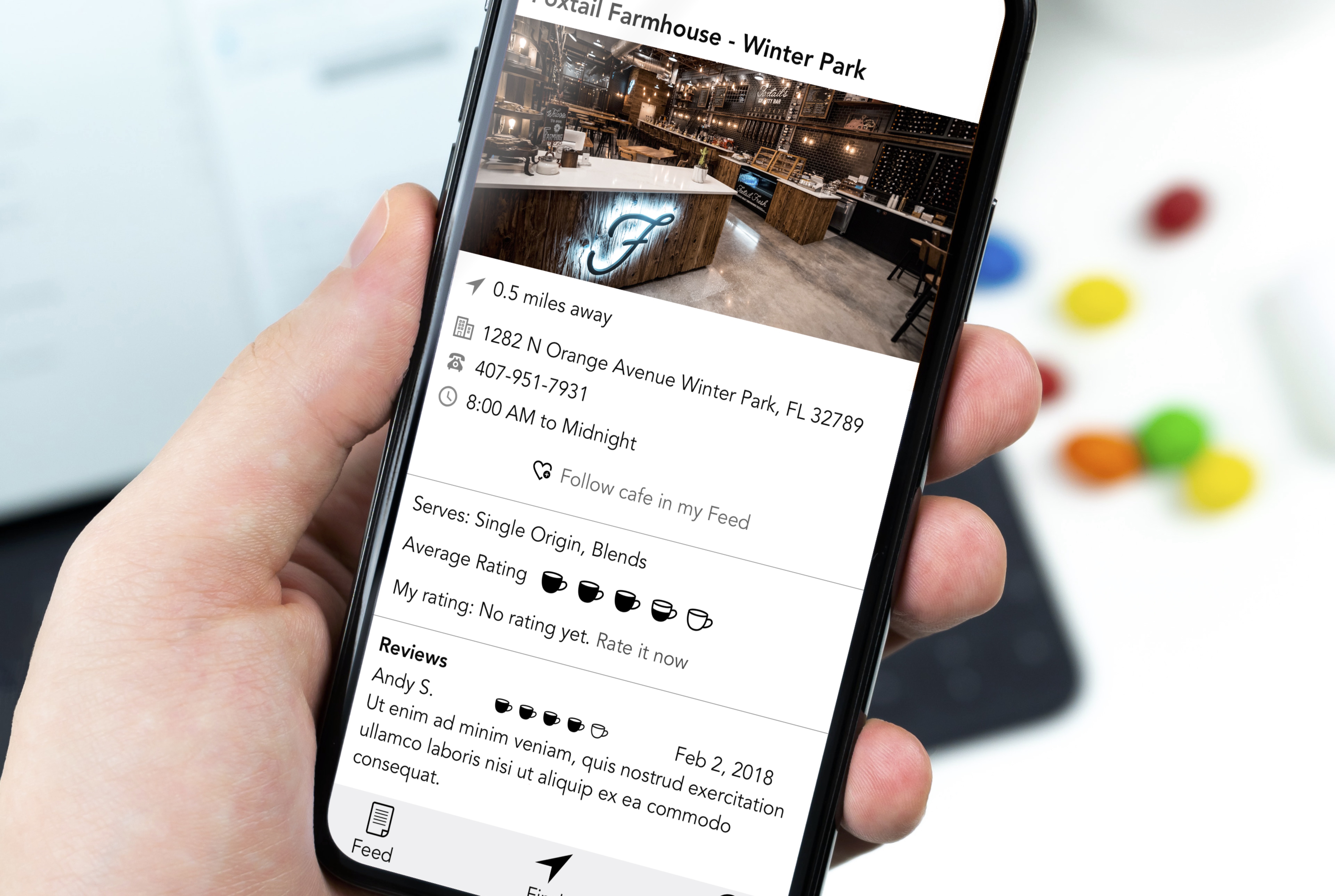 A key aspect of Cafetracker was the ability to rate a certain type coffee bean at a coffee shop. The rating would be added to the establishment’s profile, and would help users in their search for a specific coffee bean within a set geographical area.