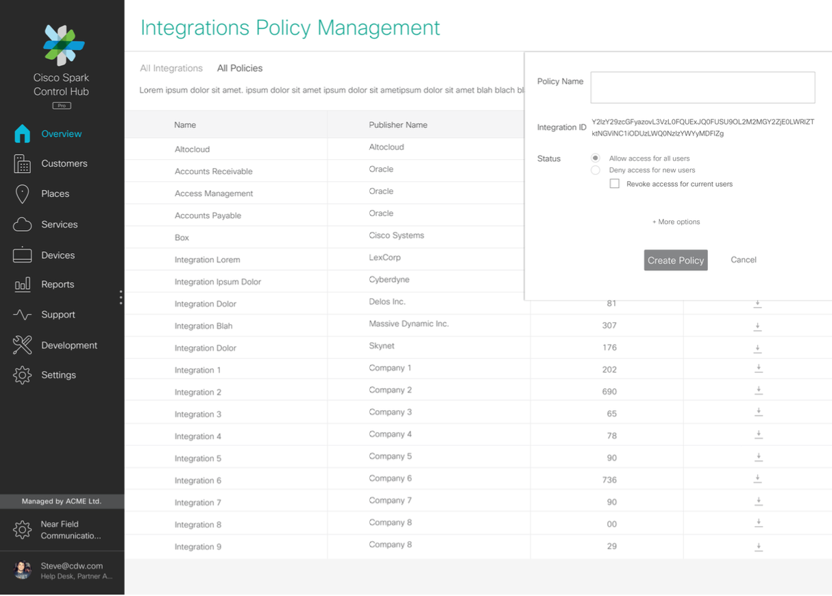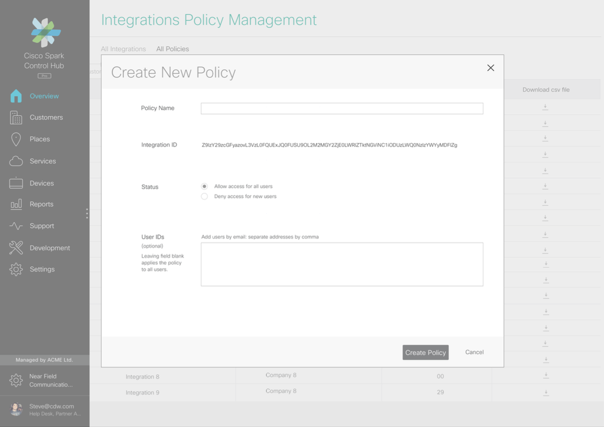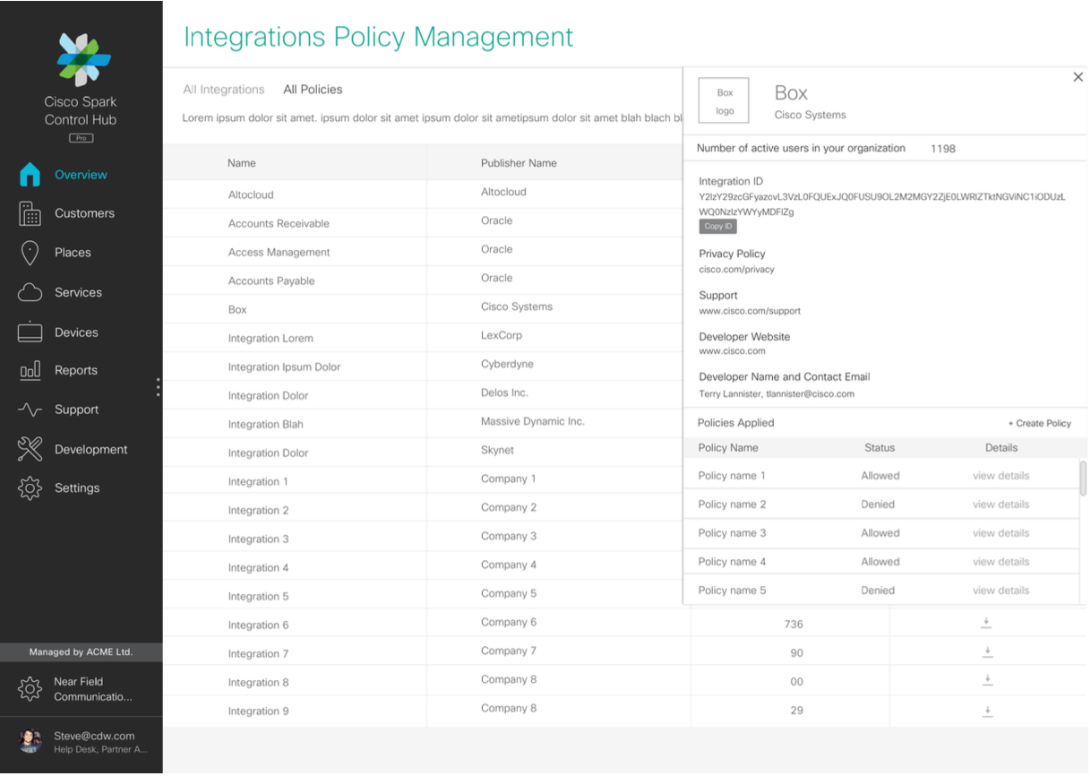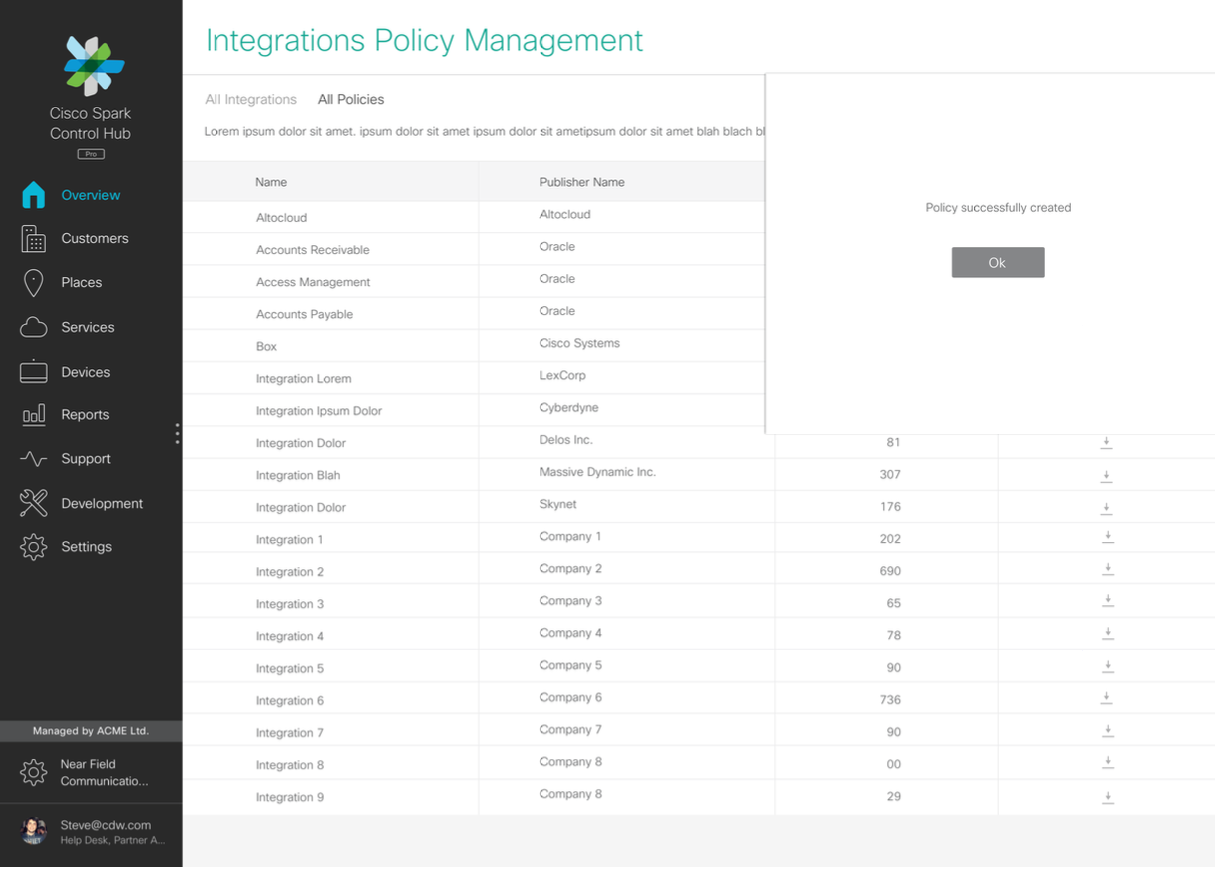 Our project required working with multiple teams across Cisco Cloud Collaboration and getting their input into the design of how this tool would work. We also spoke to a total of 5 admins to get their input on their requirements, and then later got their feedback through user testing prototypes with them. The results of these tests allowed us to iterate on the design to refine it as much as possible within the constraints of time and resources.